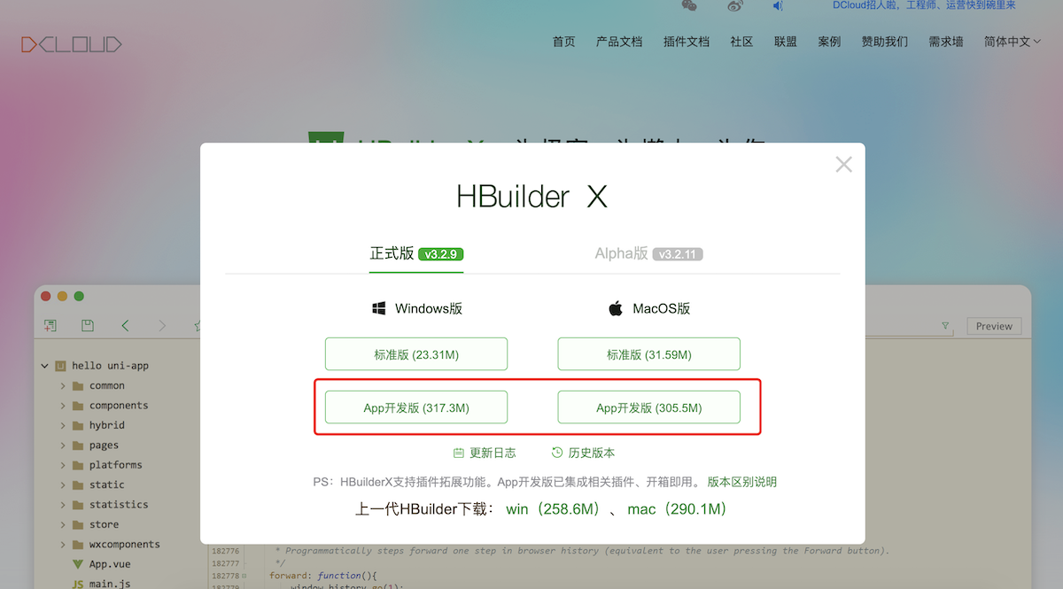 根据自身电脑系统选择对应软件下载,建议选择APP开发版