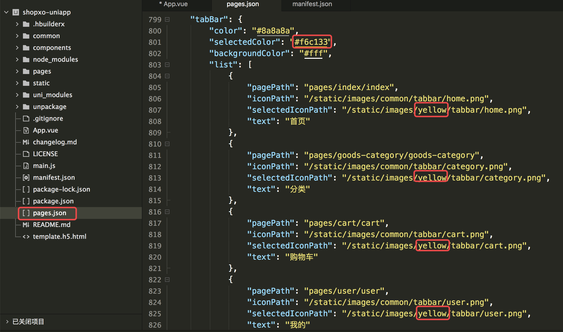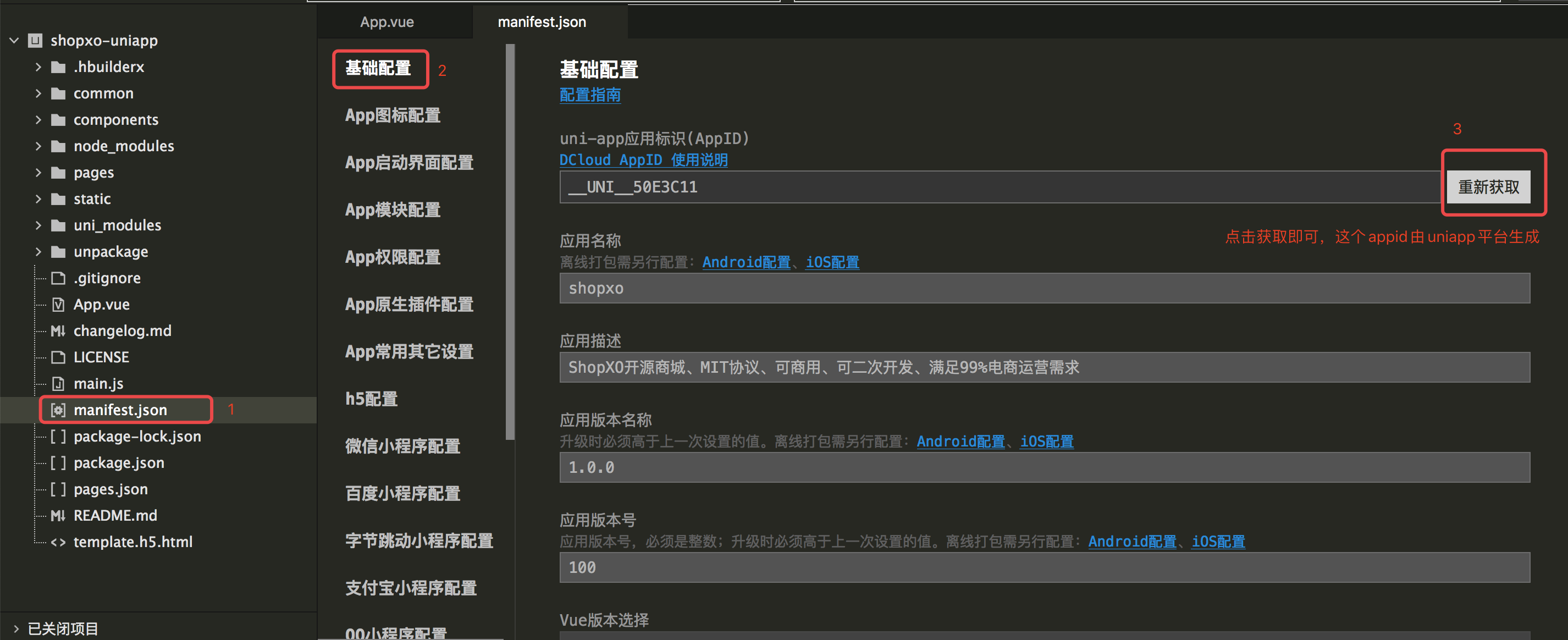 所有端:App.vue, pages.json, mainifest.json